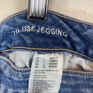 American Eagle AEO Hi-Rise Jegging Skinny Super Stretch Jeans Medium Wash Women’s Sz 6. Excellent condition. Clean and comes from smoke free home. Questions welcomed.