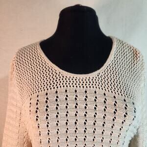 Style & Co Medium SoftApricot Long Sweater Scoop Neck Multi-Stitch Pattern Boho