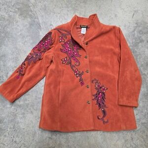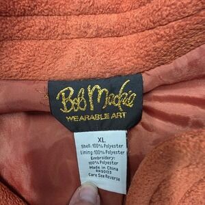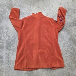 Bob Mackie Wearable Art Fleece Jacket Embroidered Floral Orange XL