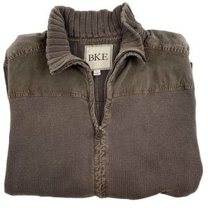 BKE MEN'S ZIP UP LONG SLEEVE COLLAR SWEATER BROWN. Large..