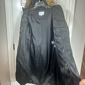 Cole Haan Signature Black Chevron Quilted Faux Fur Hood Puffer Coat M