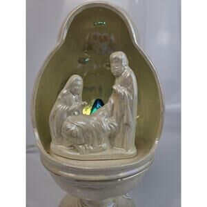 Nativity Scene Irredescent Ceramic Christmas Light Works!