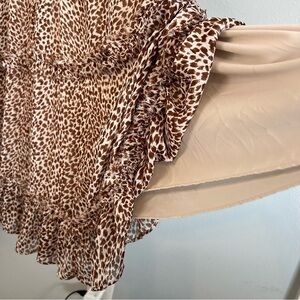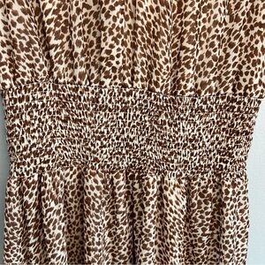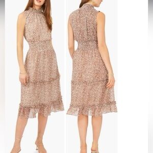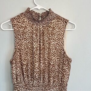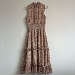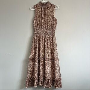 1. STATE sleeveless animal print smock neck tiered midi dress Waistband Sz M