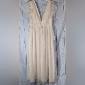Lulus Yours Evermore Cream Swiss Dot Ruffled Midi Dress NWT