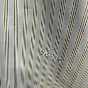 Classic and versatile Orvis wrinkle-free men's button-down shirt in a timeless light blue stripe pattern. Crafted from a comfortable cotton blend with easy-care, non-iron fabric — perfect for business casual, office wear, travel, or everyday professional style.
