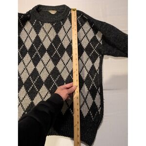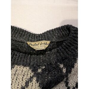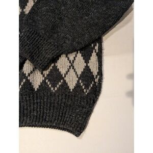 Polat Triko Mens Medium Argyle Sweater Baumwolle Cotton Dark Gray CrewNeck Knit