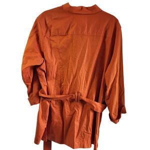 Keywords: linen blend, belted dress, shirt dress, tunic, orange, XL, button down, chest pockets, rolled sleeves, casual, vacation, office wear, women's fashion