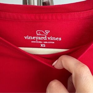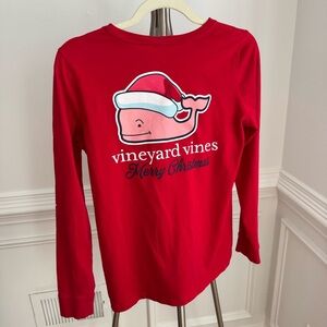Classic Vineyard Vines red long sleeve tee with pocket detail and Merry Christmas design on the back under whale logo. Christmas tree on left sleeve. Size XS, excellent like new condition.