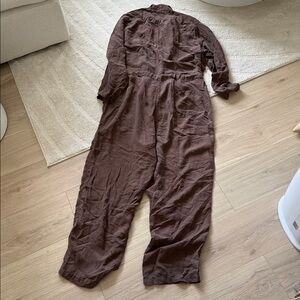 Brand new with tags, beautiful long sleeve brown jumpsuit from Unsubscribed. Size XL. Retails for $268. Is 100% silk. Has tie around the waist built in so you can make it tighter. A bit wrinkly from storage! Perfect for fall!