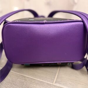 Rare & super cute Hocus Pocus themed Loungefly mini backpack! Black base with magical purple trim + teal/purple spell book, potions, candles & stars print all over. Gold hardware, front zipper pocket + main zipper top, adjustable straps. Perfect for Disney park days, spooky season, or collectors!