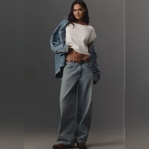 By Anthropologie crop top features a drop shoulder and cropped silhouette. It is crafted from cotton, polyester, and elastane, and has a pull-over style. Raw hem neckline and sleeves with button details at waist.