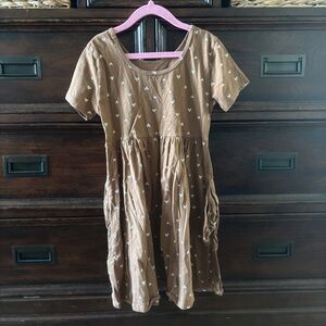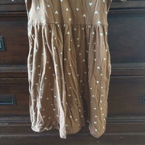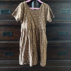 Charming brown dress featuring a white heart pattern. Perfect for casual outings.