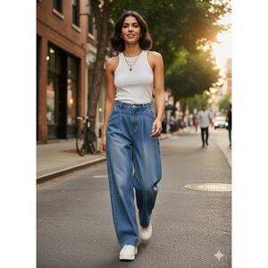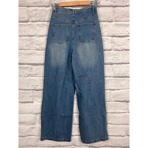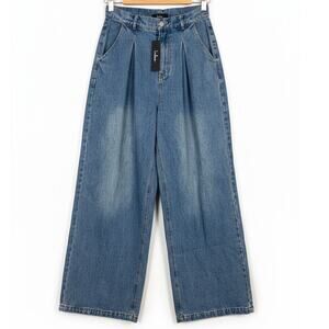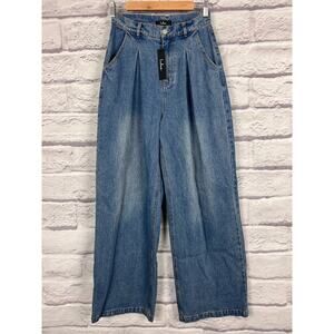 NWT Lulus Womens S Y2K Grunge Skater 90s Pleated High Rise Wide Leg Blue Jeans