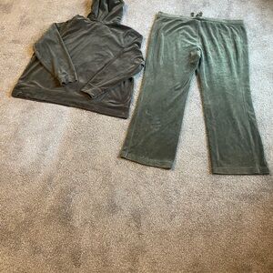 Green Velour Zip Up Hoodie and Pants Set Hoodie 3X Pants XXL Lounge Wear