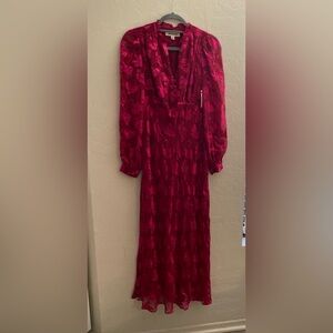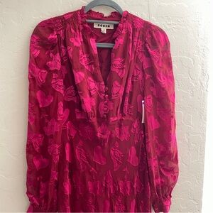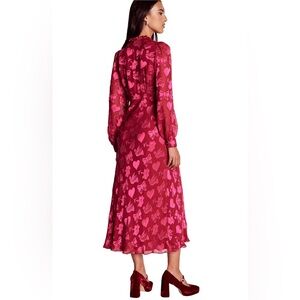 Boden Cassie Devore Midi Tea Dress Pink Red Heart Dove Valentine Long Sleeve 2