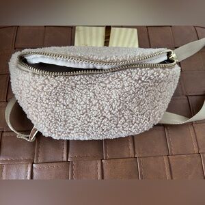 This stylish tan fleece fanny pack/ crossbody bag is perfect for casual outings. Its soft texture and adjustable strap offer comfort and convenience. A must-have accessory for any wardrobe. Never used - in excellent condition- no stains, pilling, flaws
