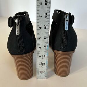 Indigo Rd. Boho Black Zip Back Peep Toe Block Heeled Sandals Sz 9.5 M