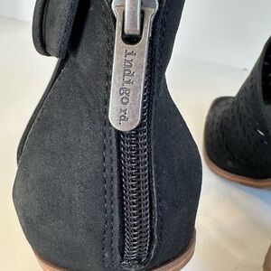 Indigo Rd. Boho black stacked heel sandals with zipper back. Can be dressed down for a casual look or these add comfort and sophistication to any dress or skirt! Great Condition! Sz 9.5 M