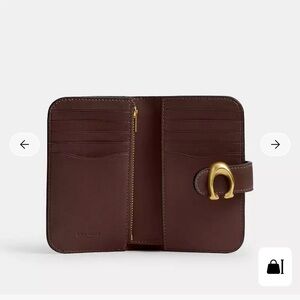 Chic brown Coach Tabby wallet with a bold gold clasp. Ideal for everyday use.