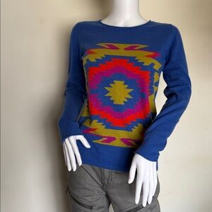 Beautiful blue cashmere sweater. Easy for jeans or under a jacket. Lightweight and easy to pack for travel.