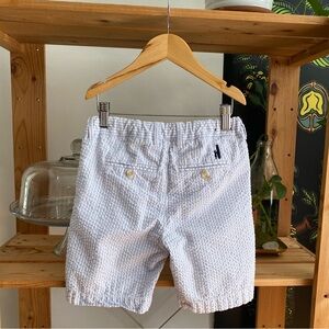 Classic boys Johnnie-O Blue White Stripe Seersucker Surfsucker Shorts. Light blue and white stripes - textured seersucker fabric- pockets - belt loops - button and zip closure
