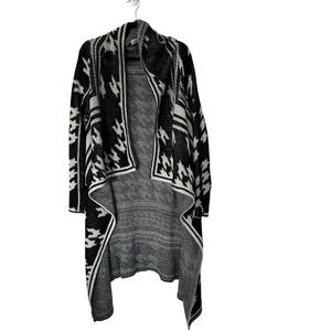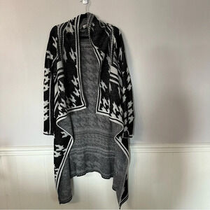 Cato Women’s Long Sleeve Black & White Knit Open Front Cardigan Sweater Sz L GUC