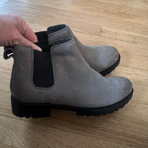 Sorel Emilie II Waterproof Leather Chelsea Boots Quarry Gray- Women's Size 9.5. Gray/black, waterproof leather uppers, elastic goring, pull-on style. In great condition.