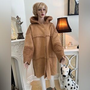 Cozy brown teddy jacket with hood. Soft texture and stylish design. Ideal for cool weather.