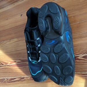 Stylish black and blue athletic sneakers with a sleek design. Perfect for sports and casual wear.new without box
