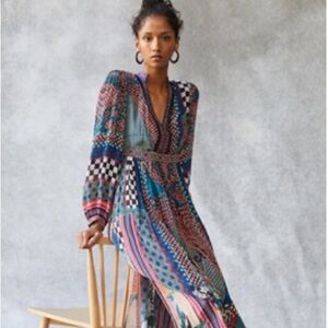 Anthropologie Colorful Patchwork Long Sleeve Dress