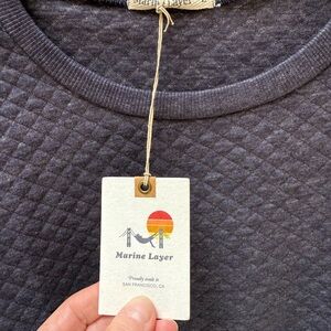 NWT. Experience the perfect blend of style and comfort with this Marine Layer crewneck sweater. Layer up in the midweight warmth of this pullover sweatshirt made from the brand's favorite quilted knit with an extrasoft touch that'll make it your new dog-walk, coffee-run, or weekend-whatever favorite Crafted in a sophisticated navy blue hue, it features a unique quilted texture that adds a touch of elegance to your casual wardrobe. The ribbed cuffs and classic crew neckline ensure a snug fit, making it an ideal choice for any relaxed occasion. Brand new with tags.