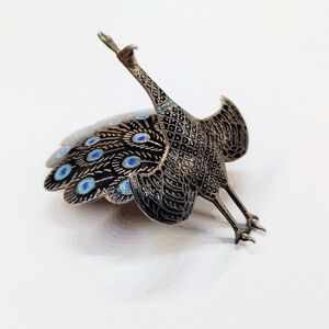 Vtg Hinged Peacock Sterling Signed Brooch Antique