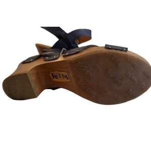 Keywords: Korks, wedge sandals, womens shoes, blue leather, ankle strap, platform sandals, wooden heel, size 9M, casual sandals, comfortable sandals, summer shoes, stylish sandals
