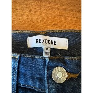 Keywords: RE/DONE, high rise jeans, ankle crop jeans, dark wash denim, zipper jeans, designer jeans, cropped jeans, high waisted jeans, slim fit jeans, denim pants, new with tags, NWT