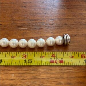 Judith Ripka faux pearl necklace with fitting for pendants and MOP Maltese cross