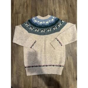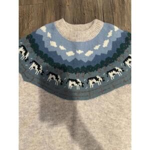 VINTAGE Orvis Fair Isle Cow Sweater Adult Sz Sm/M Tan Shetland Wool Farm Clouds