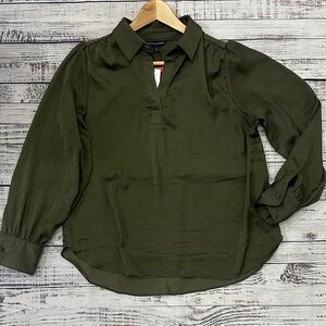 Banana Republic olive green long sleeve satin pullover Sz. M
