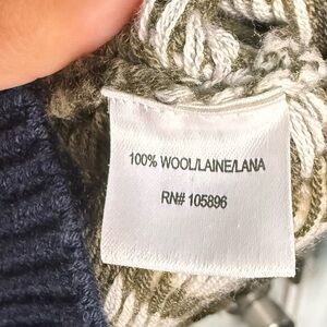 Olive Navy 100% Wool Turtleneck Sweater Fringe Fair Isle Pattern Size S