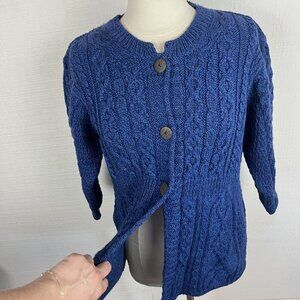 Kilronan Knitwear Cardigan M Womens Blue Button Front 3/4 Sleeves Merino Wool