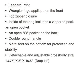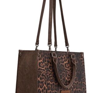 Stylish Wrangler tote with bold leopard print. Perfect for daily use.