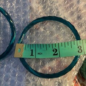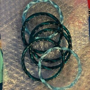 Beautiful bracelets. I think these are glass. Sadly, my hand is too wide. Very tight to get them over my hand and to my wrist or I would keep these. I’m a solid 7”wrist These are just so pretty which is why I purchased them. Gorgeous colors