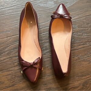 Like New Kate Spade Burgundy Flats with Bow & Gold Details