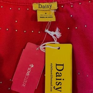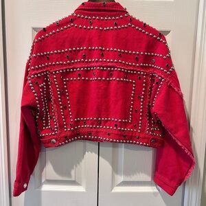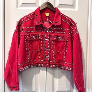 Y2K Studded Red Cropped Denim Jacket ✨ Crystal Embellished Statement | Size S