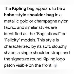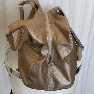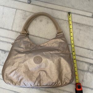 Kipling Metallic Champagne Hobo Bag with Polka Dot Interior
