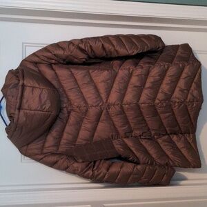 Lane Bryant Bronze Puffer Jacket Hooded Chevron Quilted Coat Size 14/16