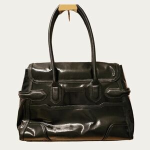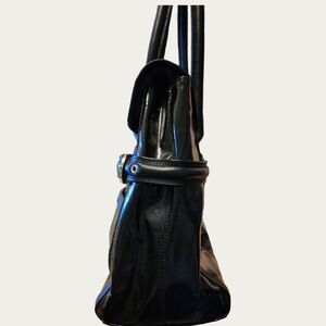 Discover timeless elegance with this chic black coated twill satchel. Perfect for elevating any outfit, this bag combines style and functionality while protecting your computer and holding office essentials.