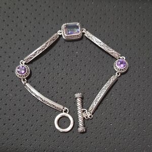 Elegant braided bracelet with silver accents. Features a secure clasp. perfect for any occasion. Sterling Sliver and Czech accents. Measures 8.inches long.