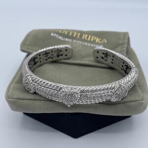 Judith Ripka Elegant Sterling Silver and Black Braide Leather Bracelet