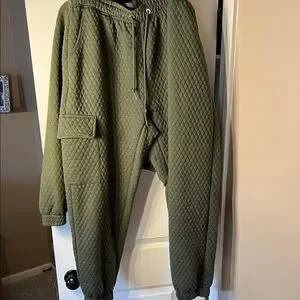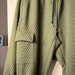 Stay cozy and stylish with this olive quilted hoodie and jogger set. Perfect for casual outings or lounging at home.