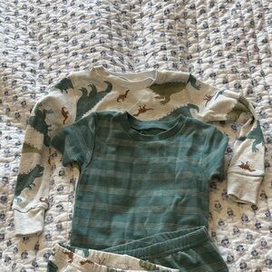 Kids Dinosaur Pajama Set - Green and Cream 2 pack